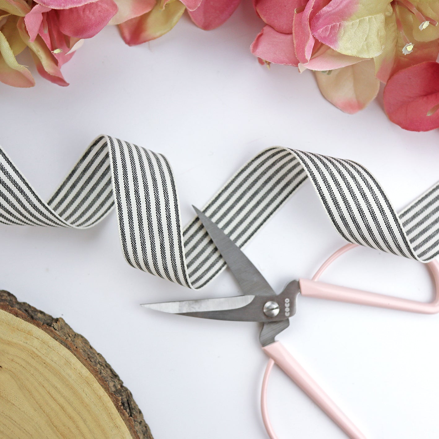 Este lazo de listas ancho es un delicado y mate, tintado en colores blanco y negro, y de textura fina.