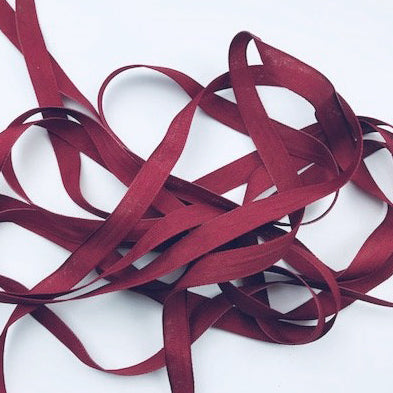 Lazo fuerte y tupido, elaborado en un textil que simula el lino, con acabado mate y tintado en color Cereza.