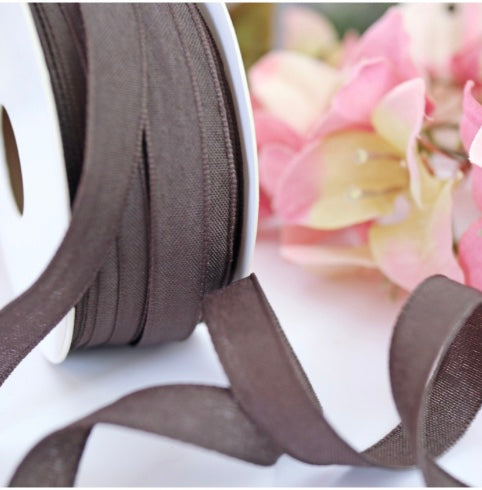 Lazo fuerte y tupido, elaborado en un textil que simula el lino, con acabado mate y tintado en color Marrón.