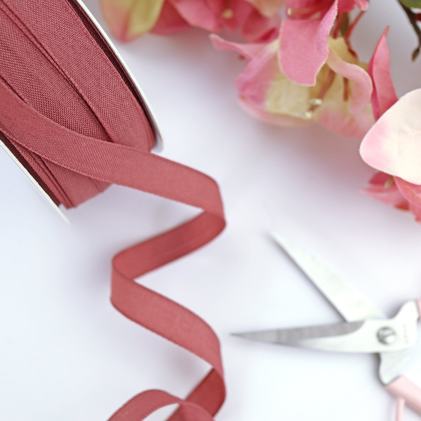 Lazo fuerte y tupido, elaborado en un textil que simula el lino, con acabado mate y tintado en color Rosa Viejo.