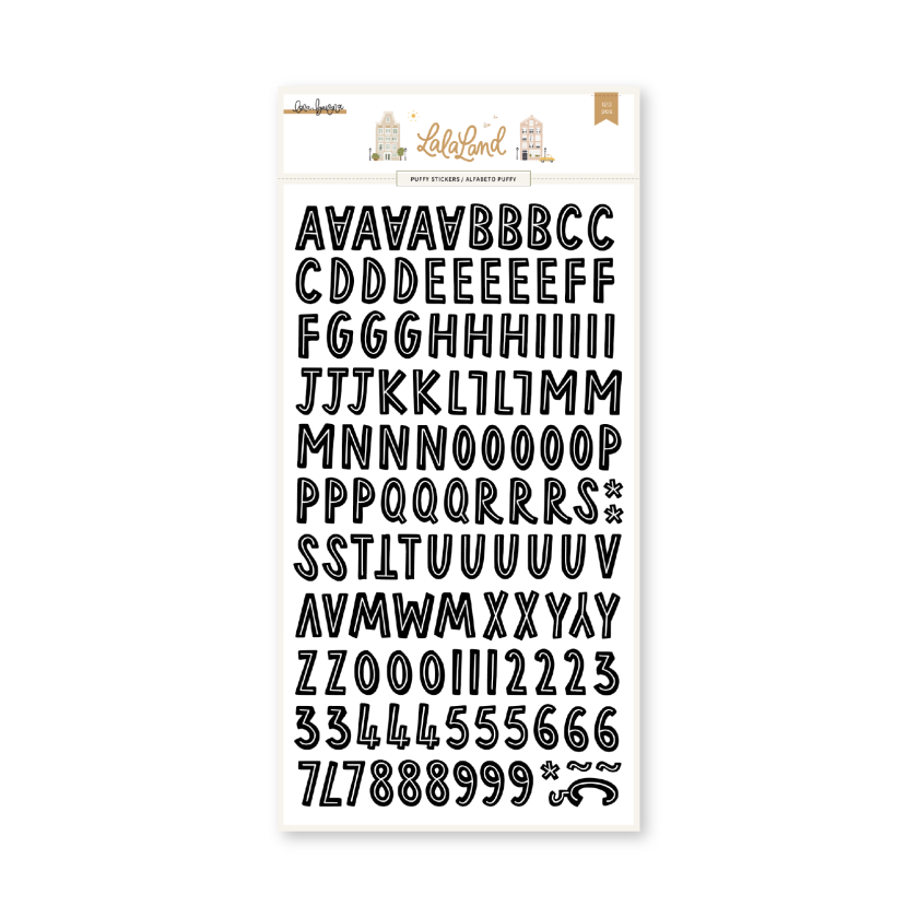 - Contenido: una hoja con 124 stickers que incluyen letras, números y símbolos.