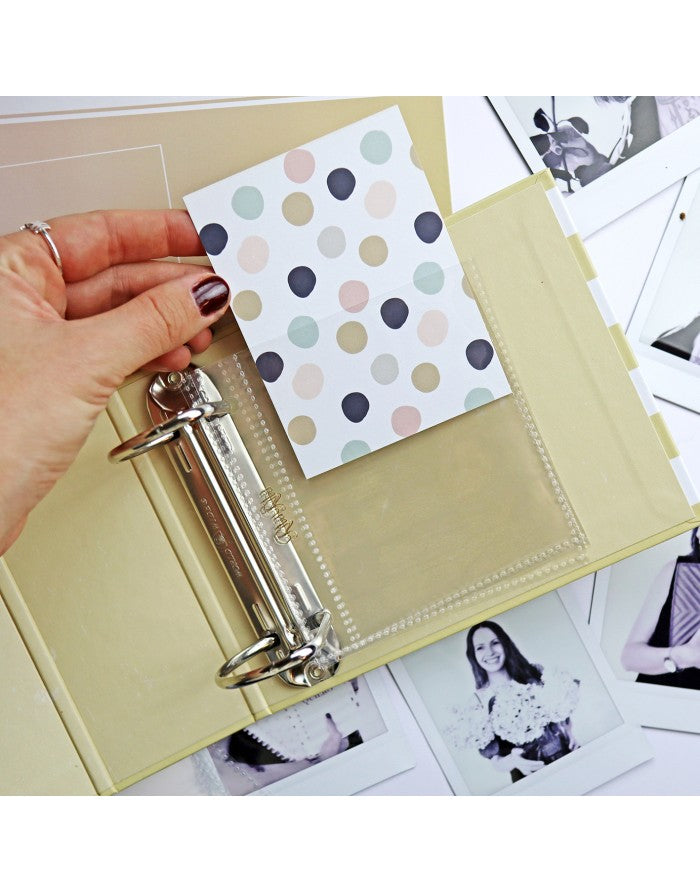 Este pack incluye 10 fundas 3x4" con un bolsillo y 2 agujeros taladrados.