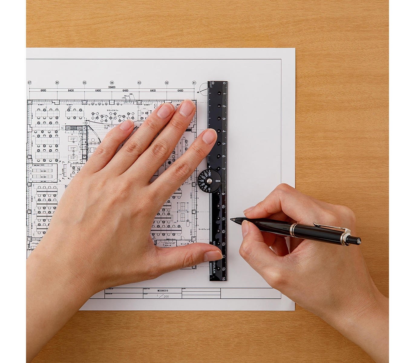 Esta regla compacta mide hasta 16 cm cuando está abierta. Doblado para caber en un estuche para bolígrafos, y tiene una escala de puntos para medir fácilmente la altura y la profundidad. Se coloca en su lugar cada 15 grados, mide ángulos y tiene agujeros cada 1 cm para marcar a intervalos iguales, lo que la convierte en una regla "multiusos".