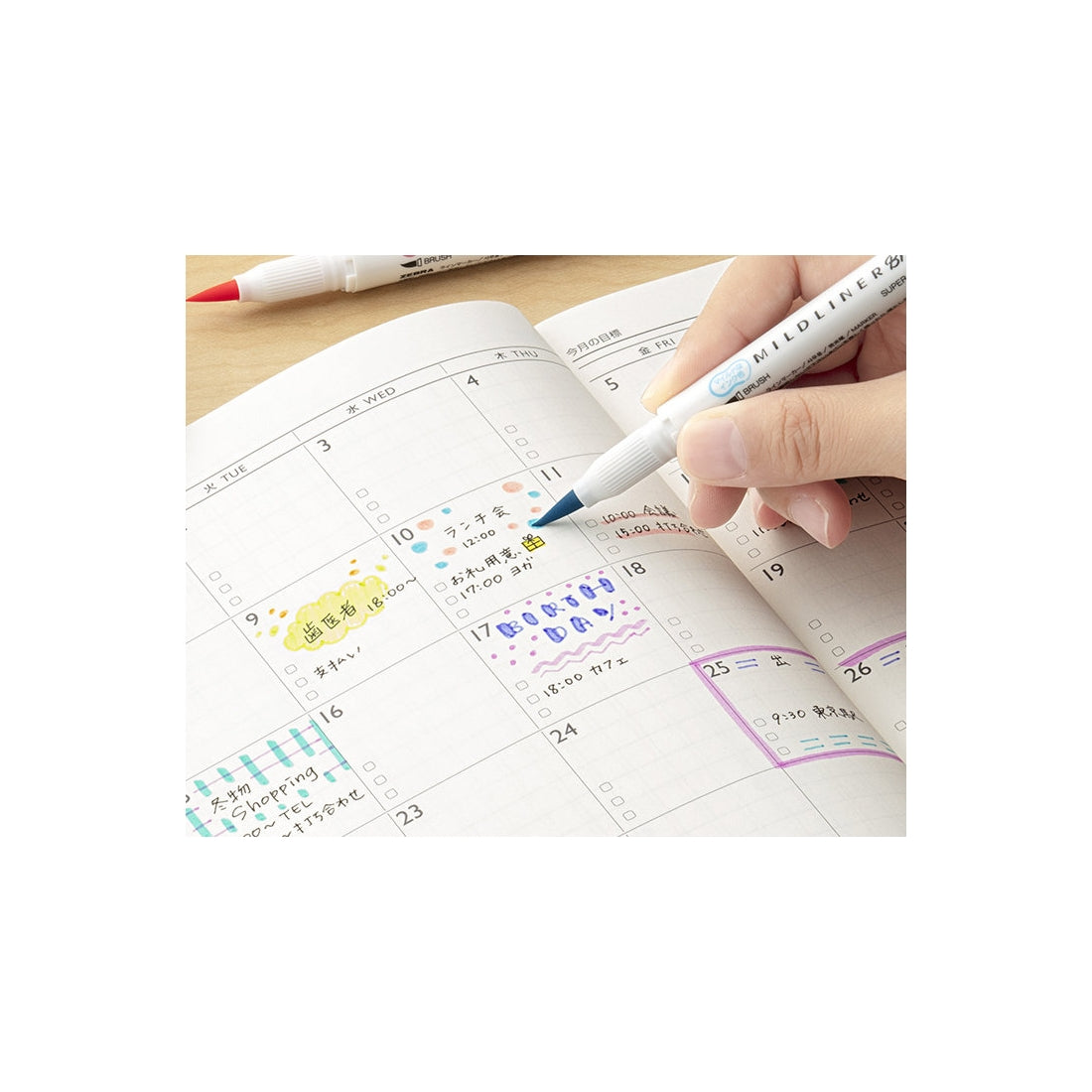 El Mildliner Brush Pen dispone de punta pincel flexible y punta bala fina que permite colorear, dibujar letras grandes o escribir con pequeño detalle