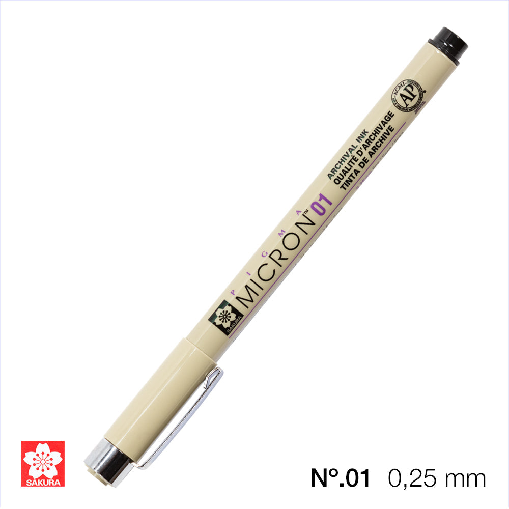 Rotuladores Sakura Pigma Micron de tinta negra calibrados.