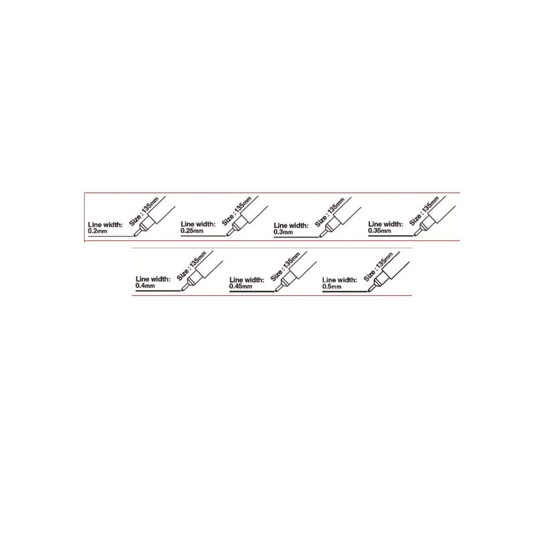 Rotuladores Sakura Pigma Micron de tinta negra calibrados.