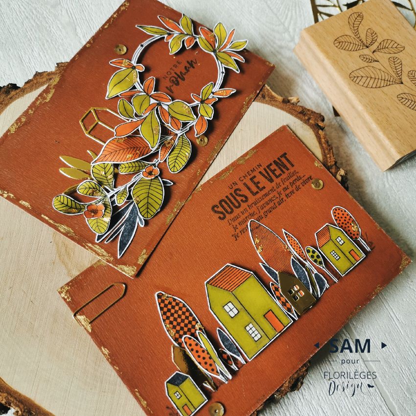 Sello de madera Trois feuilles Florileges