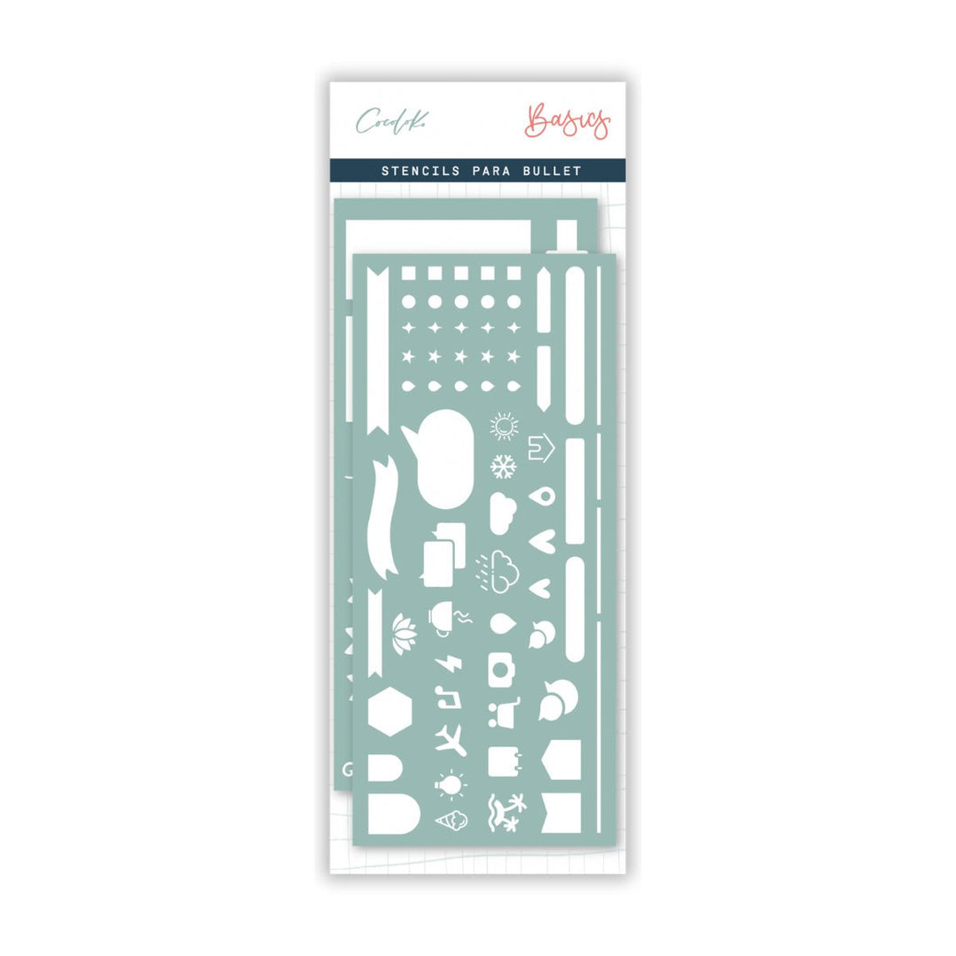 2 hojas de stencils que te ayudarán a organizar tu Bullet Journal de forma fácil y cómoda.