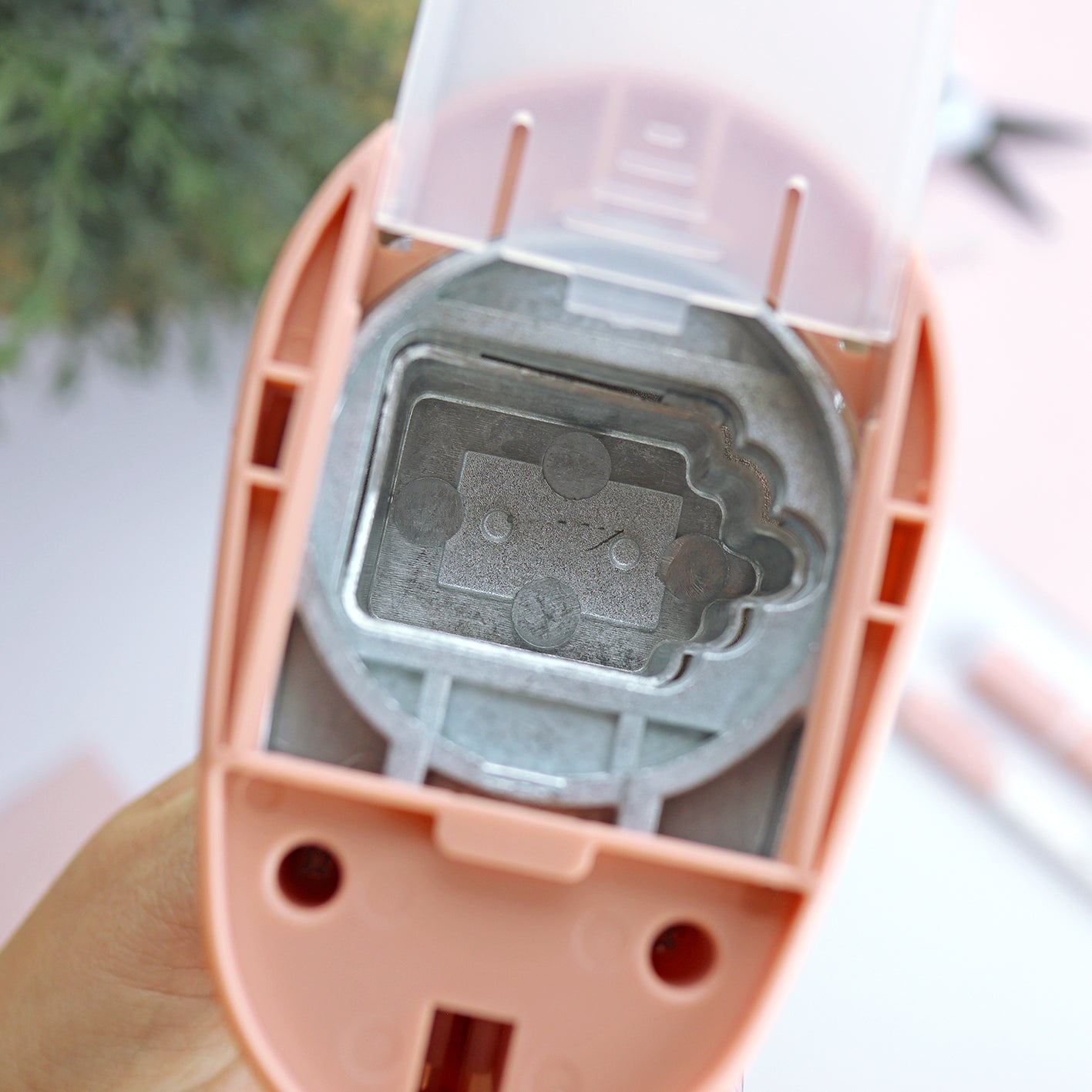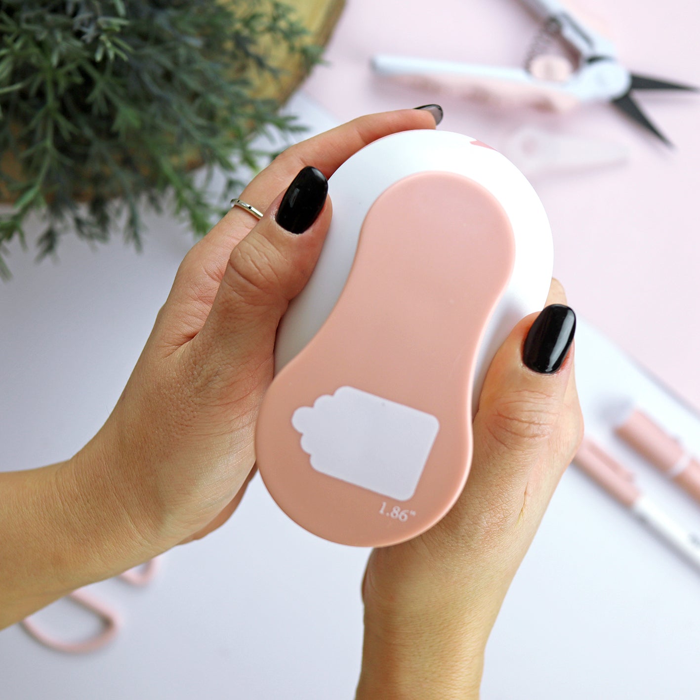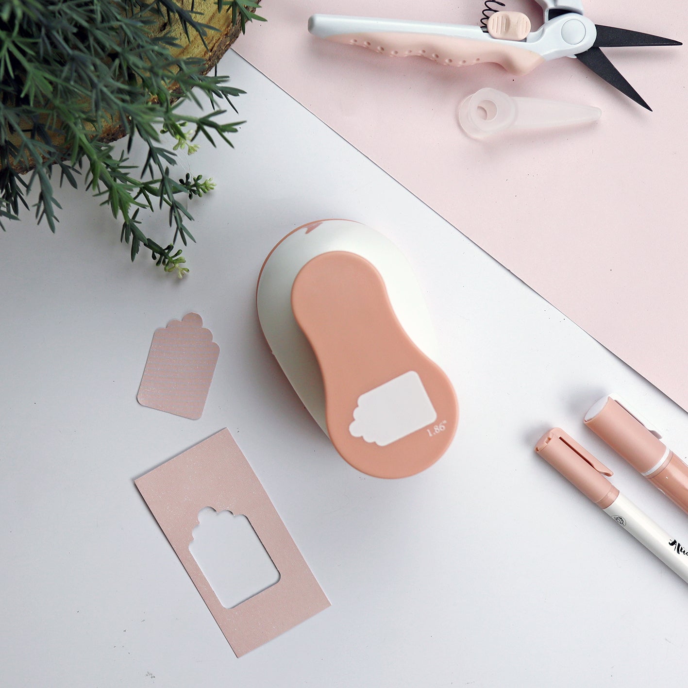 La troqueladora Etiqueta es una herramienta de mano con la que puedes crear fácilmente etiquetas que luego puedes añadir a tus trabajos de scrapbooking.