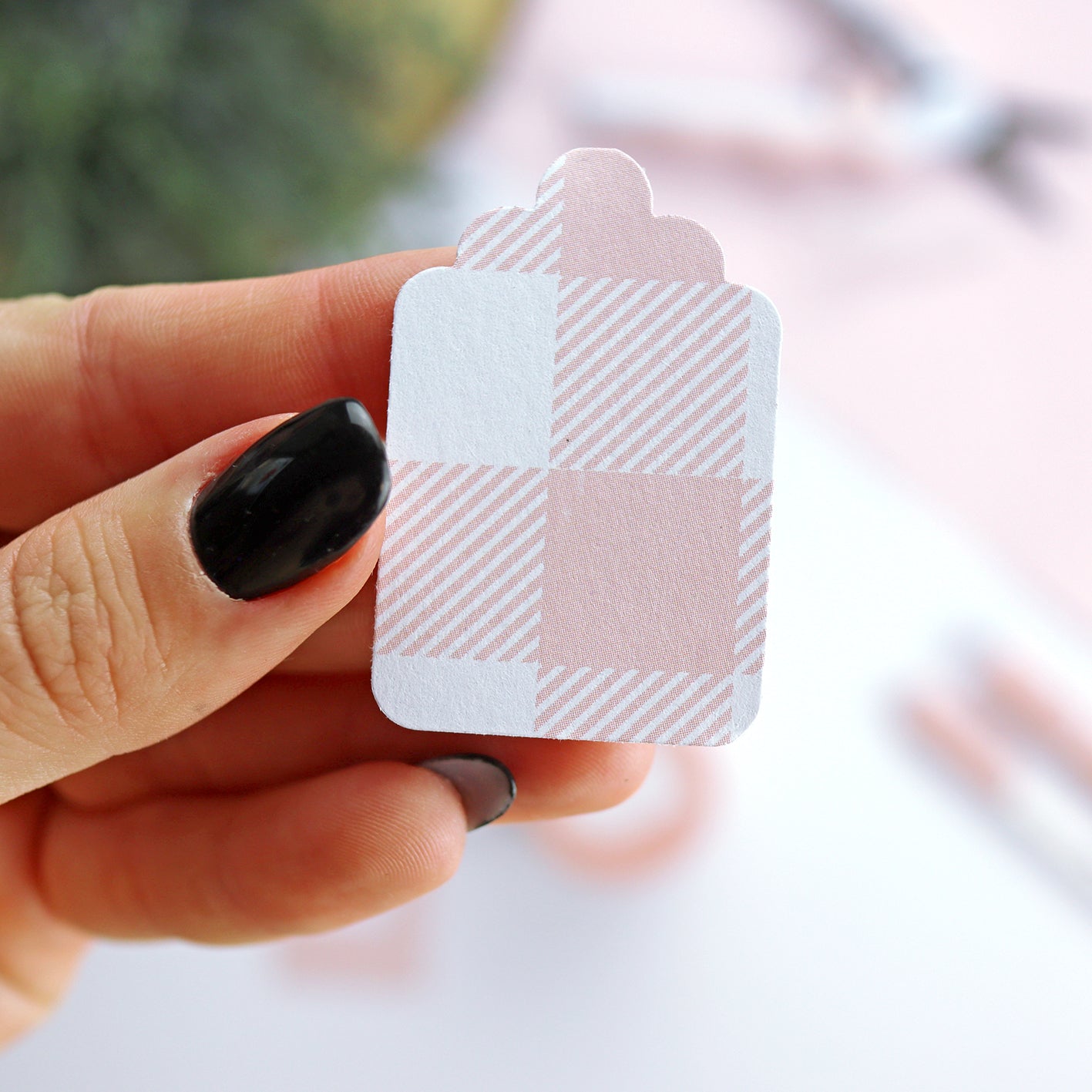 También puedes hacerle un agujero a la etiqueta y luego colgarla con ayuda de una cadena de bolitas.