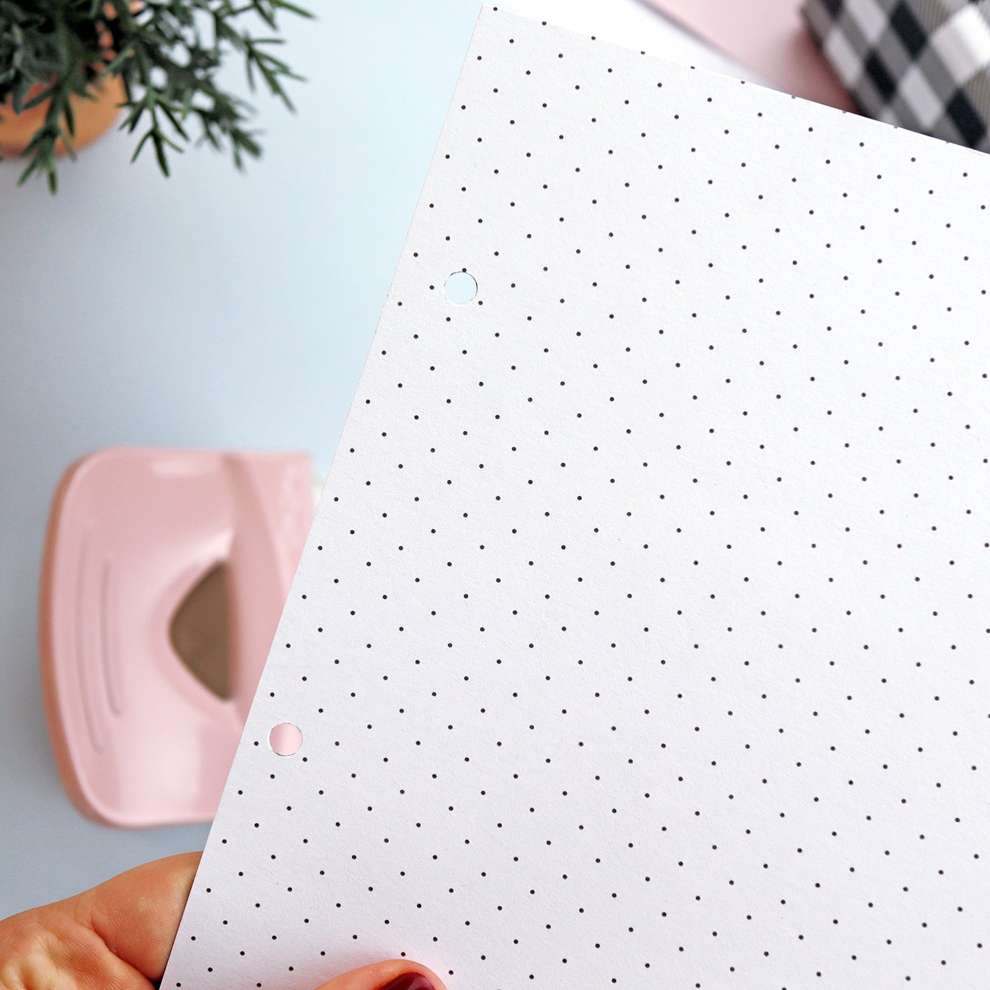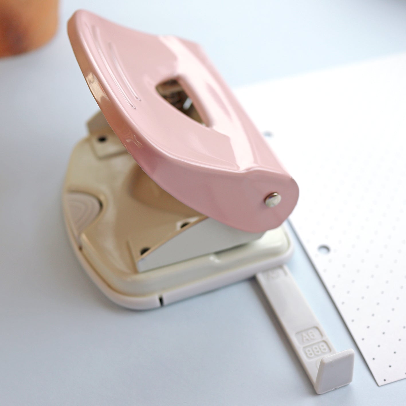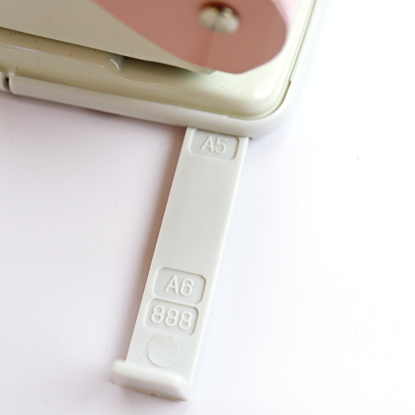 El espacio entre los punzones perforadores es fijo, pero con ayuda de la guía puedes crear agujeros para varios formatos: A4, A5 y A6.